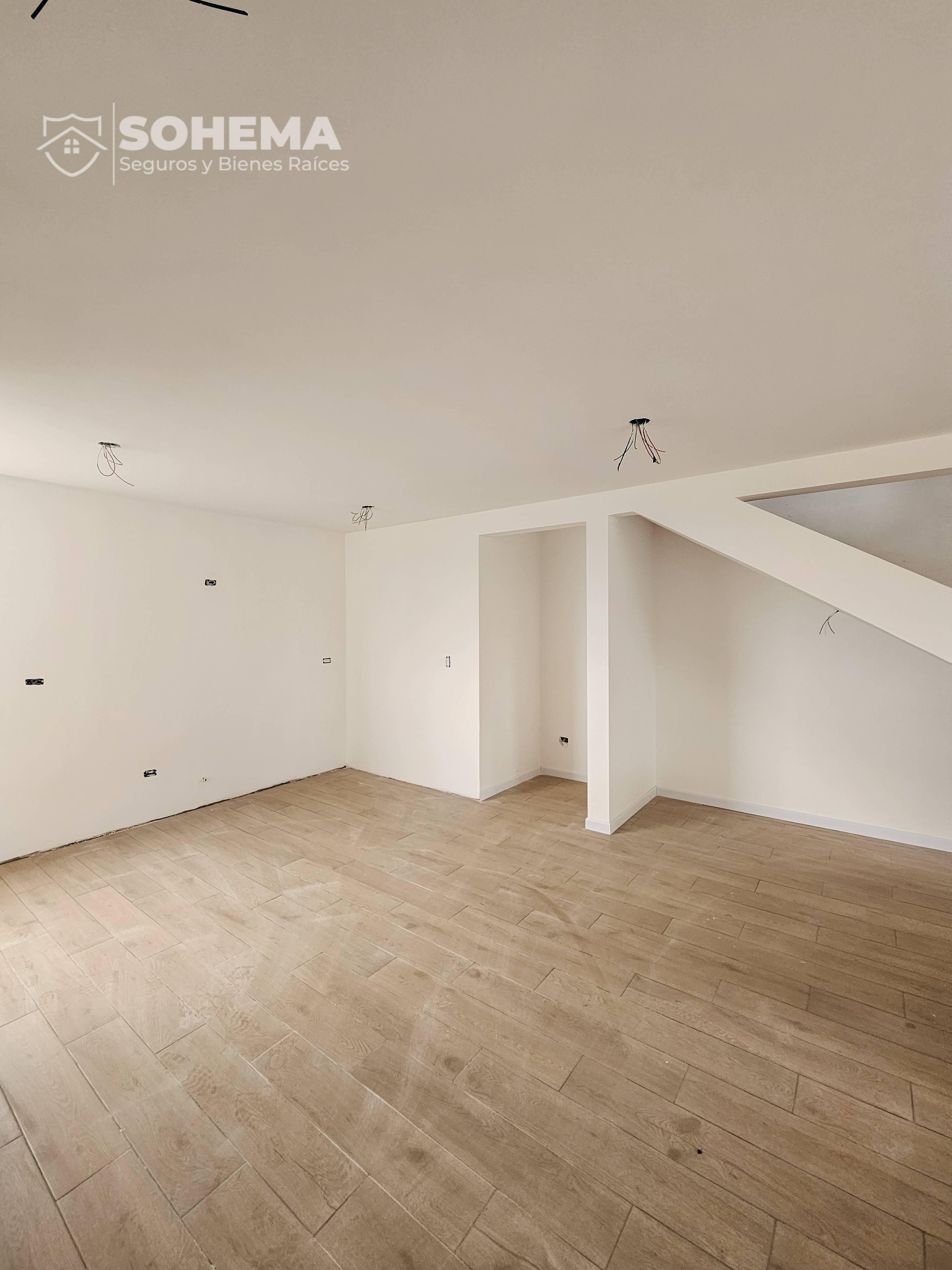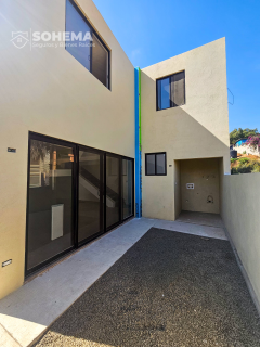 Casas de dos niveles sobre terreno de 126 m², con 112.5 m² de construcción, amplio jardín de 90 m² y estacionamiento para 1 auto (techado o libre).