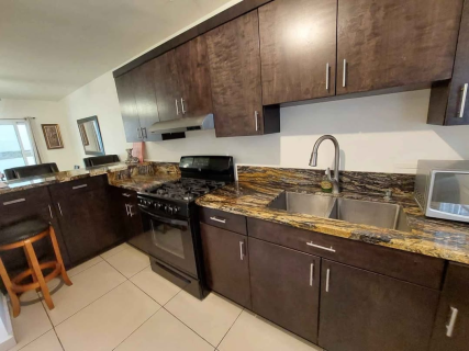 ●Cocina totalmente Equipada con Barra para 3 personas, Estufa, Refrigerador grande.