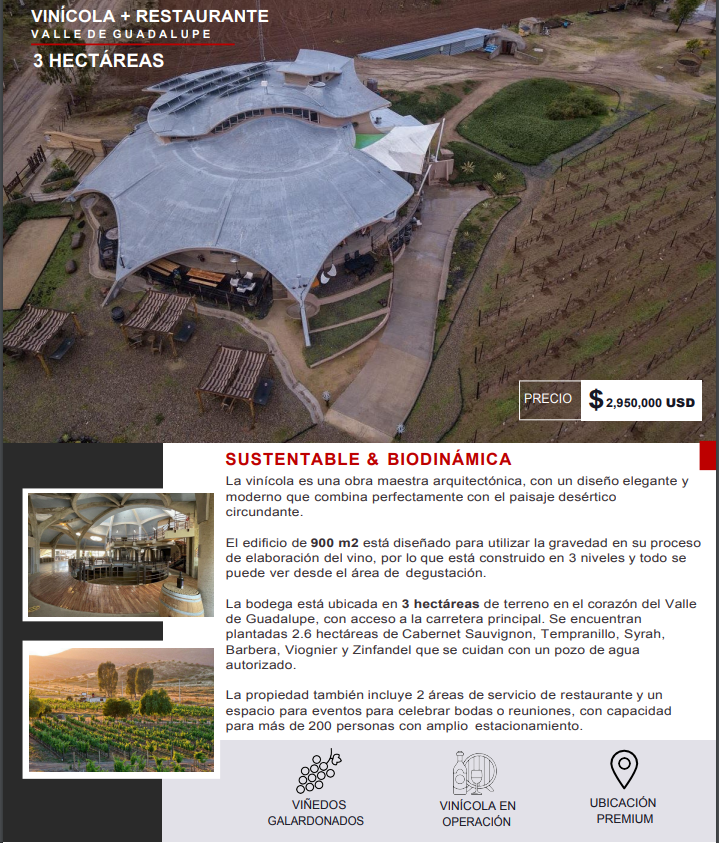 Vinícola Alximia, Valle de Guadalupe, en venta, 3 hectáreas de terreno 900 m2 de construcción 2.6 hectáreas sembradas de Cabernet Sauvignon, Tempranillo, Syrah,