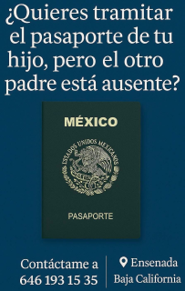 Necesitas tramitar el pasaporte de tu hijo (a) pero el otro padre no está presente? Escríbeme al 646 193 15 35 y consulta tu asunto.
