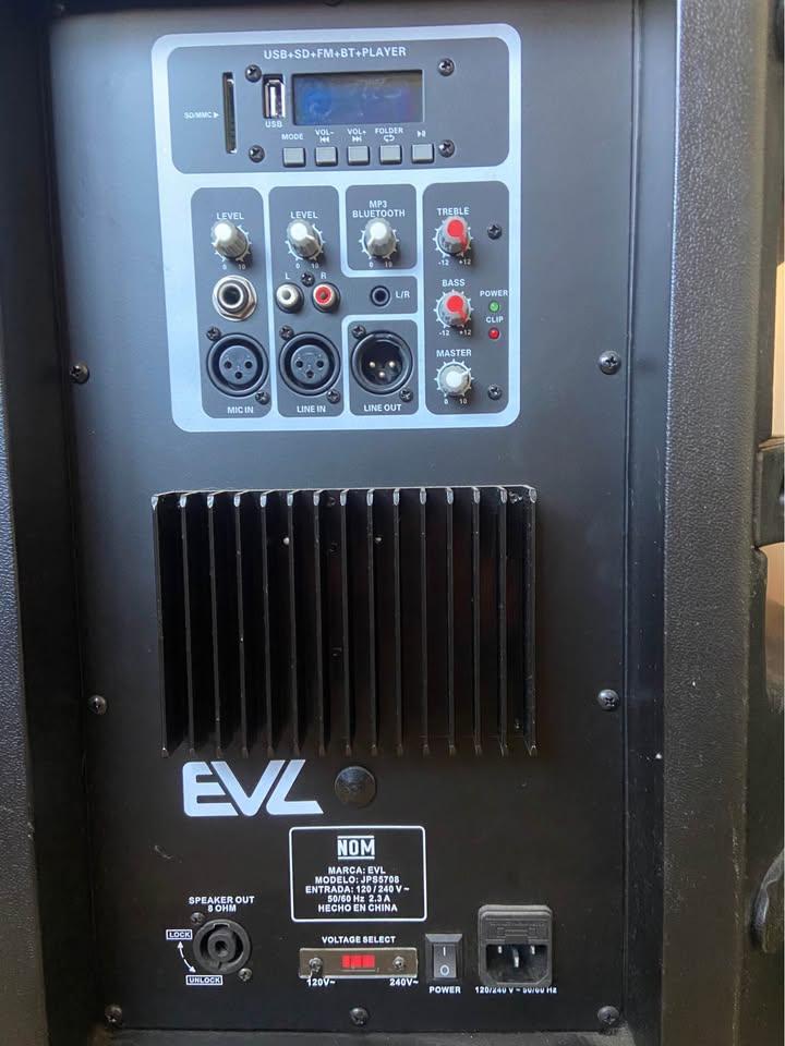 bocinas evl grandes con llantas para transporte tambien las puede empotrar en tripie, buen sonido como nuevas