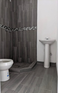 Cocina integral equipada con parrilla de cuatro quemadores y boiler