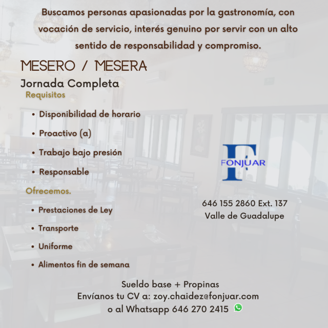 - favor de enviar whatsapp 646-270-24-15 su cv o solicitud de trabajo