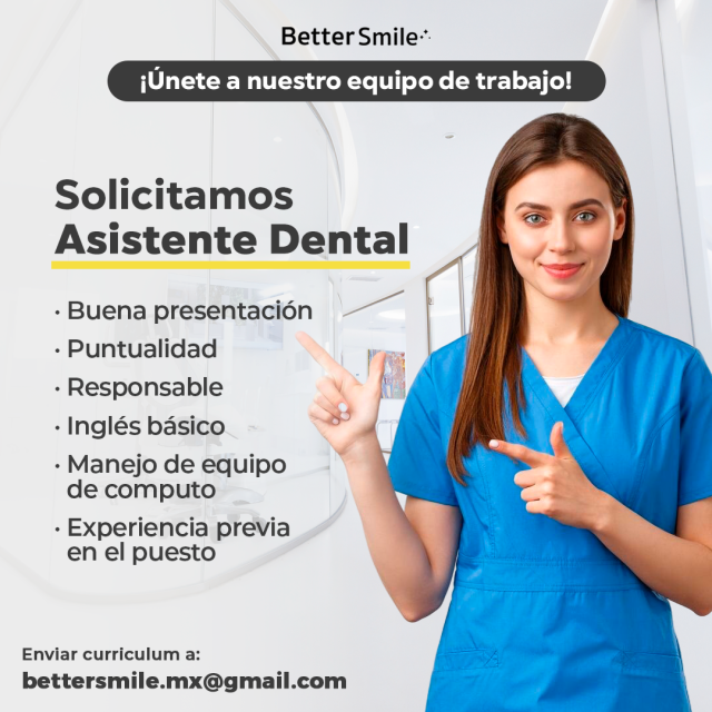 Enviar curriculum a nuestro correo bettersmile.mx@gmail.com
