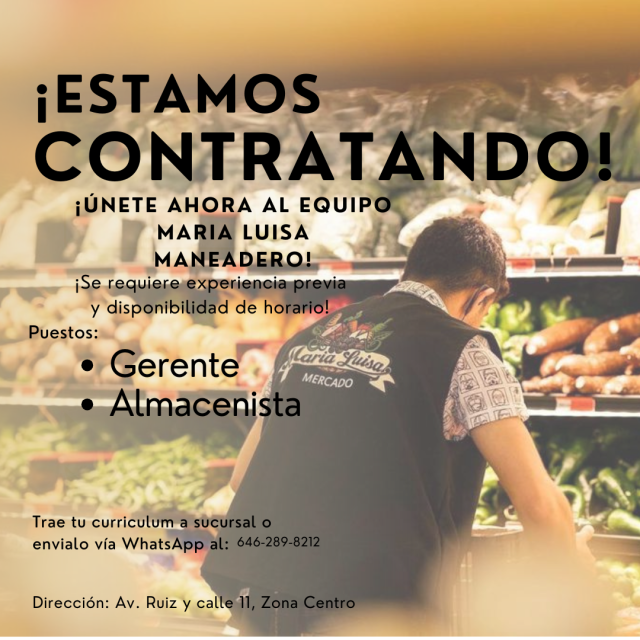 El empleo es en Mercado Maria Luisa Maneadero pero la contratación es en Maria luisa Ruiz
