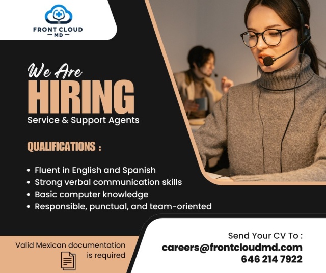 RequisitosNo sales involved — this is 100% customer service. Who We’re Looking For: Fluent in English and Spanish (near-native English required) Strong verbal communication skills Basic computer knowledge (typing, navigating systems) Responsible, punctual, and team-oriented Call center experience is a plus, but not required