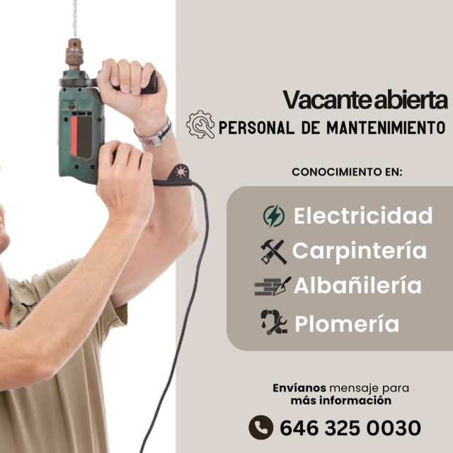 Tenemos vacante para el area de mantenimiento