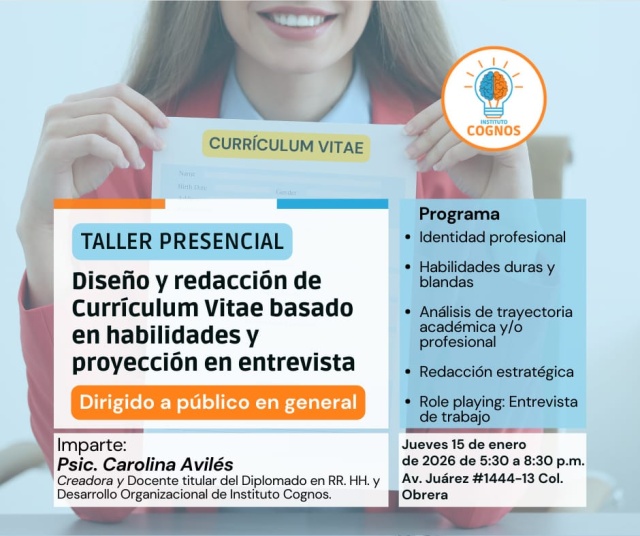 PrestacionesBENEFICIOS: Un CV bien diseñado capta la atención del reclutador. Aprenderás a redactar tus logros y mostrar tus competencias de manera estratégica. Aumentaras las oportunidades de entrevista. Conocerás que buscan los reclutadores hoy.