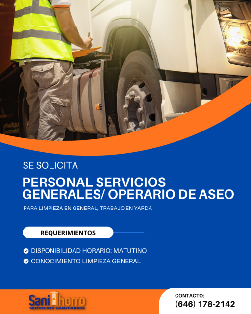 Requisitos- Disponibilidad de horario: Matutino - Conocimiento de limpieza general - Solicitud elaborada