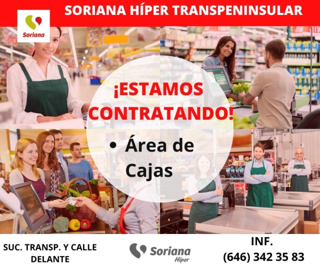 INTERESADOS ENVIAR CV A caphum994@soriana.com o BIEN ACUDIR A RH AL INTERIOR DE LA SUCURSAL