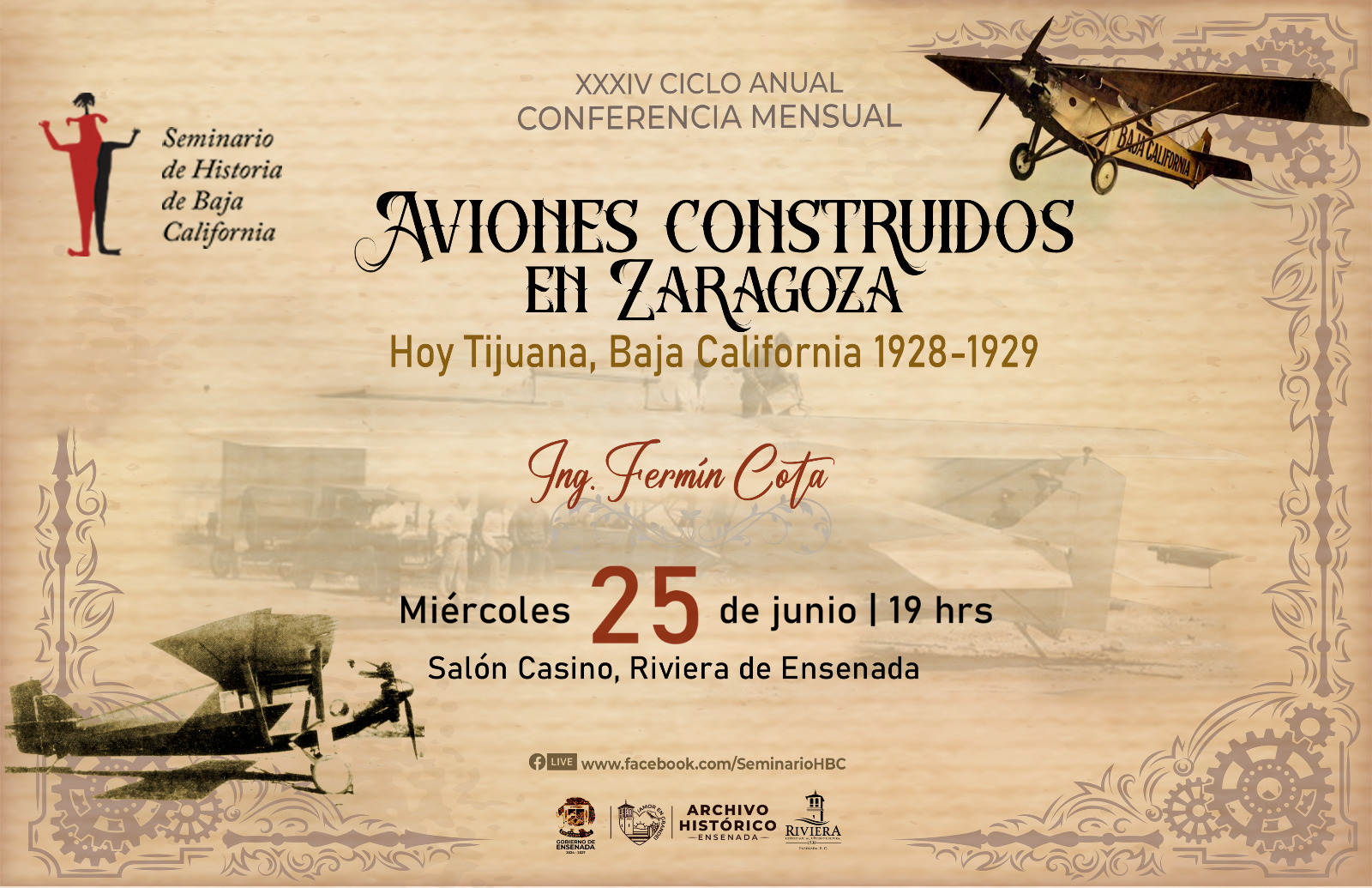 Ensenada, B. C.- Para dar a conocer el tipo de aeronaves que se construían a finales de los años 20, integrantes del Seminario de Historia de Baja California tendrán en el Centro Cultural Riviera la conferencia “Aviones construidos en Zaragoza 1928-1929”, en próximo 25 de junio a las 19:00 horas.
