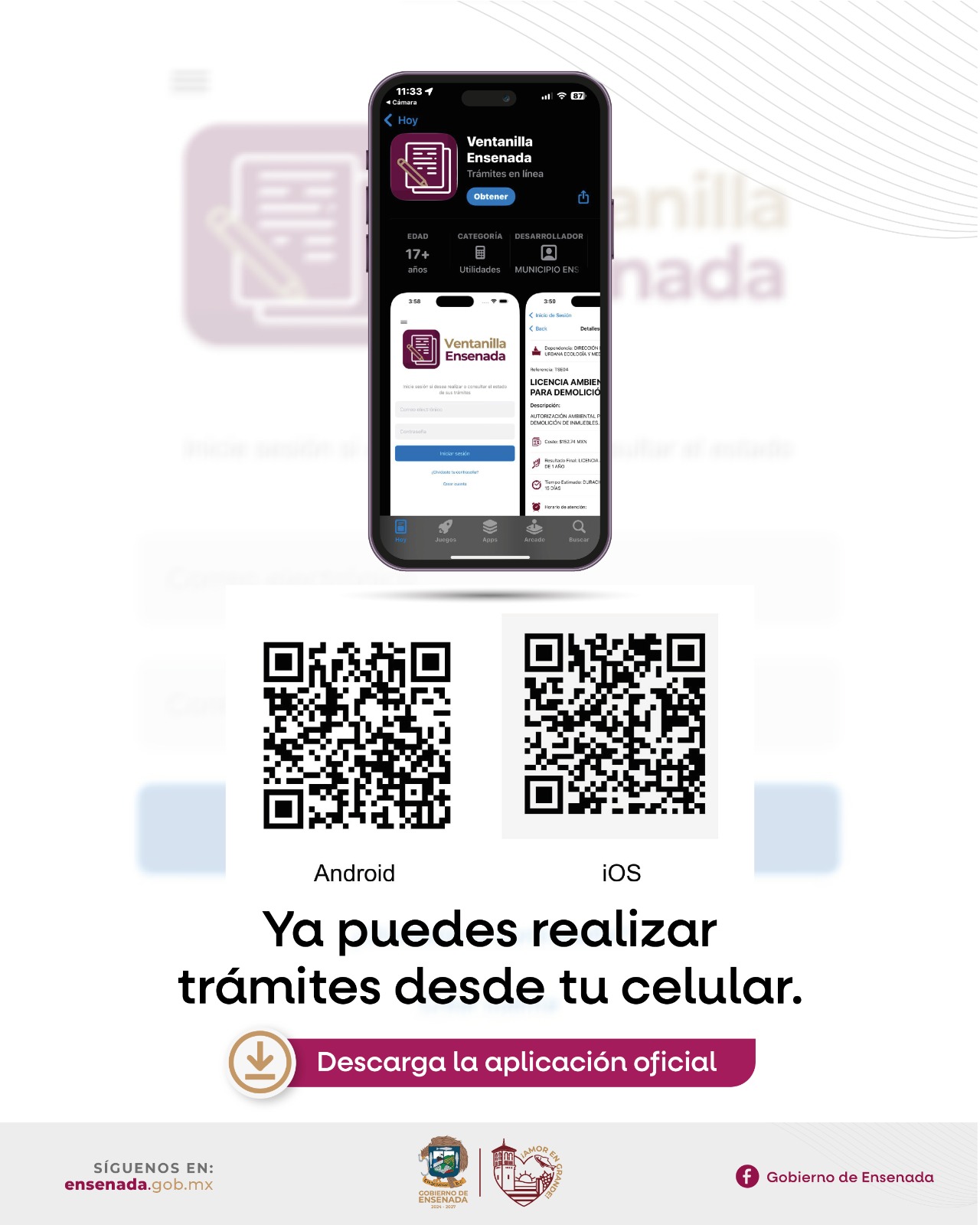 Manifestó que las personas interesadas pueden ingresar al portal https://ventanilla.ensenada.gob.mx, o bien, descargar la aplicación para dispositivos móviles y tabletas, disponible para iOS y Android, las 24 horas, los 365 días del año.