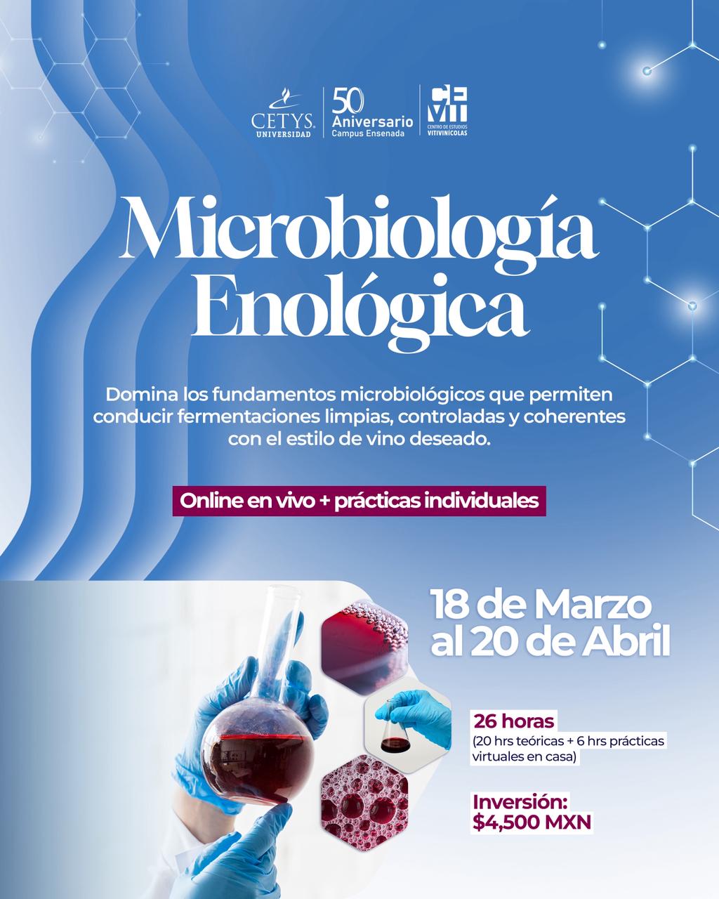 Ensenada, Baja California a 20 de marzo de 2026.- CETYS Universidad Campus Internacional Ensenada a través del Centro de Estudios Vitivinícolas (CEVIT) continúa consolidando su oferta de educación continua con el inicio del curso Microbiología Enológica, programa enfocado en el estudio aplicado de los microorganismos que intervienen en la elaboración del vino y su impacto en la calidad, estabilidad y perfil sensorial.