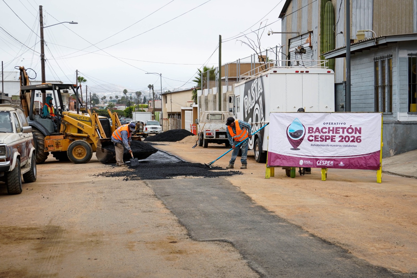 ENSENADA.- La Comisión Estatal de Servicios Públicos de Ensenada (CESPE) continúa con las obras de rehabilitación de vialidades que han sido intervenidas por trabajos de reparación en la infraestructura hídrica, acciones que forman parte del operativo “Bachetón CESPE 2026”.